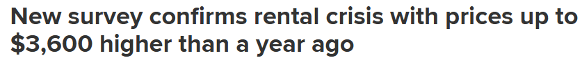标题: 澳洲租房危机:房价较一年前最高上涨$3600!