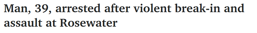 据悉,阿德一名男子因涉嫌从Rosewater的一家礼品店的窗户闯入并袭击一名妇女而被捕。