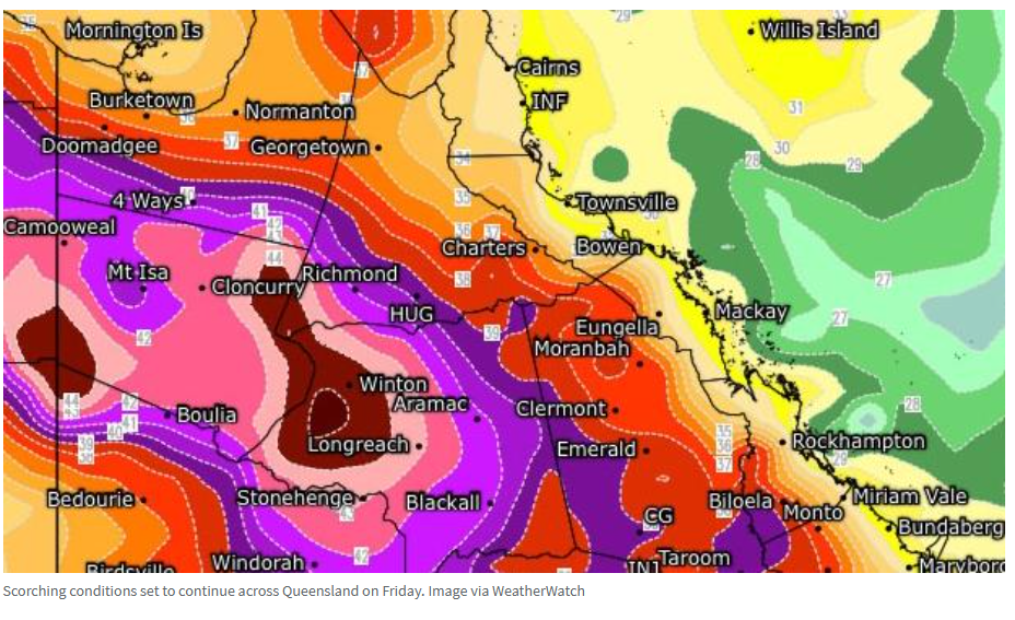 预计周六,东南部地区将受到低强度热浪的影响,布里斯班的气温可能达到37℃,Ipswich的气温可能达到40℃。
