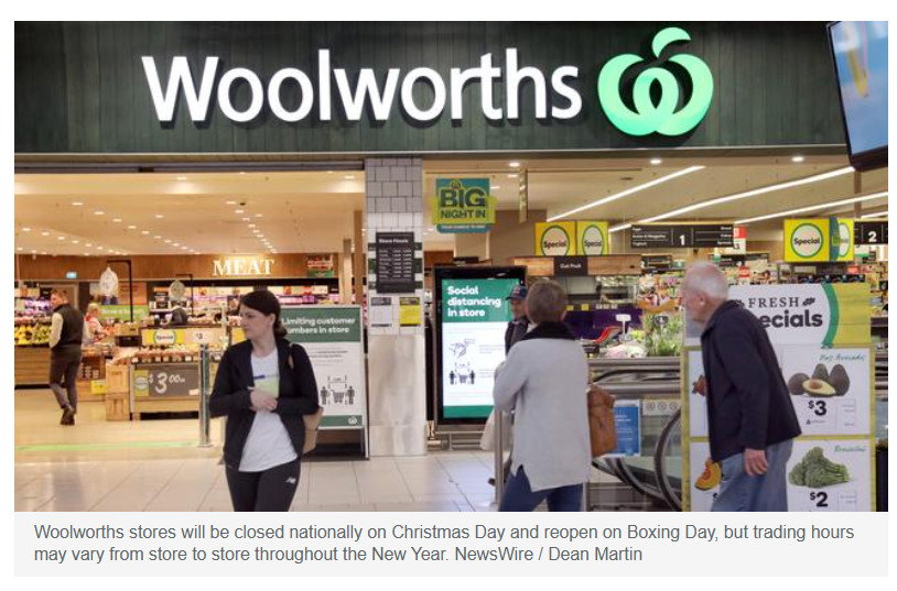 Woolworths将在新年期间照常营业,但顾客应事先了解其门店的营业时间是否有限制。