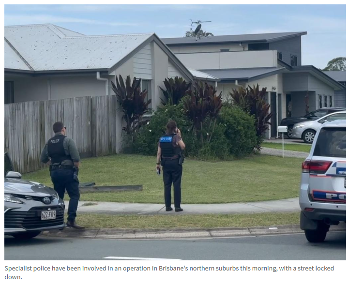 今天上午,特种警察参与了布里斯班北部郊区的行动,封锁了一条街道。