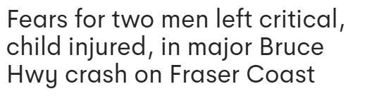 标题: Bruce Hwy发生严重车祸,两男子重伤,道路双向关闭!
