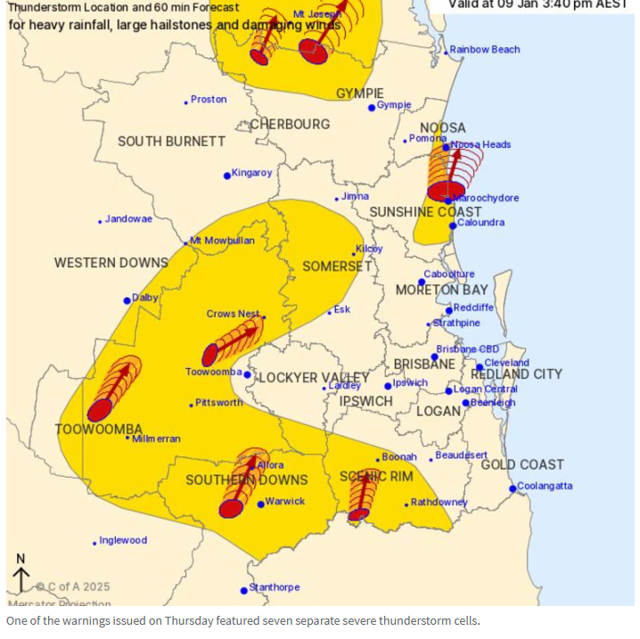 Hayes说,Darling Downs、Wide Bay Burnett和Central Highlands部分地区降雨量会更大,暴雨将持续到周六。