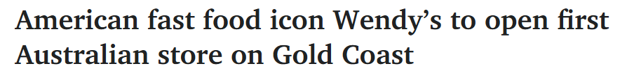 标题: 美国快餐巨头Wendy's将在黄金海岸开设澳洲首家门店!