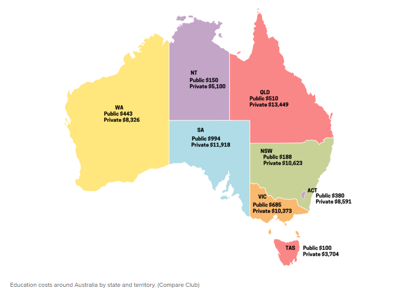"我们针对各州进行了全面分析,发现澳大利亚各地的教育成本差异巨大,即使是公立学校教育,其成本之高也超出许多家长的预期,"Compare Club研究主管Kate Browne表示。