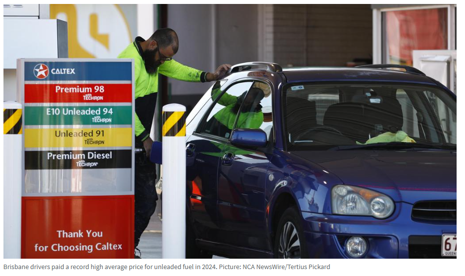 根据RACQ的年度燃油价格报告,布里斯班驾驶者去年加油平均花费为194.5澳分/升,比2023年的记录高出1.4澳分/升。
