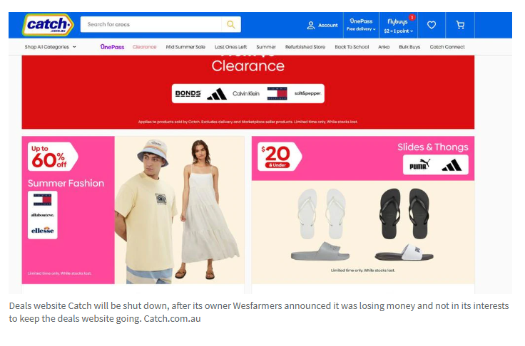 零售巨头Wesfarmers于2019年以2.3亿澳元的价格收购了Catch,该公司在向澳大利亚证券交易所(ASX)提交的一份声明中表示,将停止与Catch的交易,并将其资产转移至其他业务。