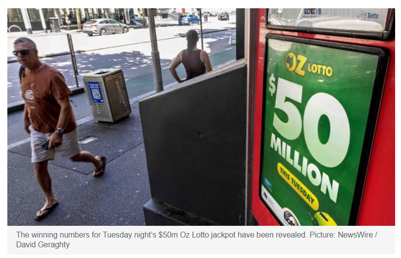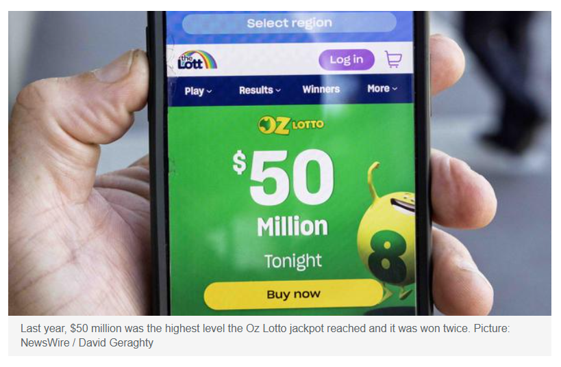 去年,5000万澳元是澳乐透头奖的最高奖金,并曾两次被中奖。