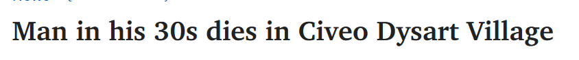 该男子死于2月27日,警方和医护人员接到报警后赶赴Dysart的Civeo Village,该村通常由矿工使用。