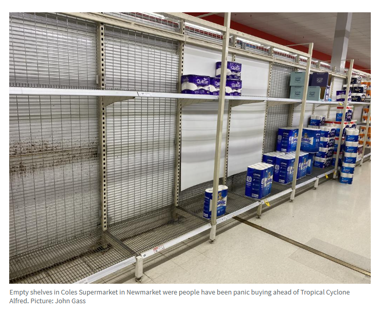 据悉,随着飓风Alfred逼近昆州海岸,一些大型超市已于周四开始关门。