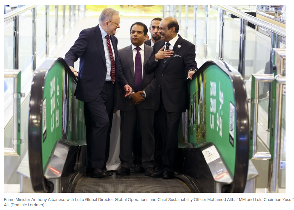 据《9news》9月30日报道,澳总理Anthony Albanese在结束为期11天的纽约、伦敦外交访问返程途中,于阿布扎比会晤LuLu Hypermarket董事长Yusuff Ali,正式邀请这家阿联酋零售连锁企业进驻澳大利亚,以打破Coles与Woolworths的市场垄断格局。