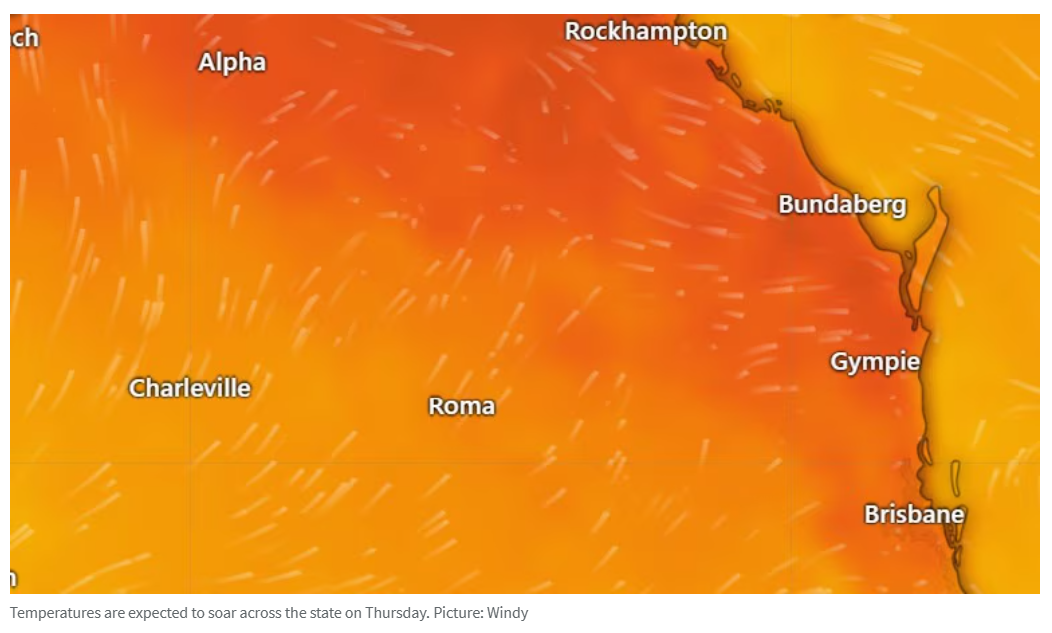 若布里斯班周四如期达到35℃预报温度,这将是自2021年10月4日出现36.6℃高温以来最热的十月份天气。