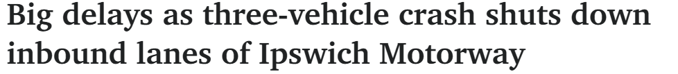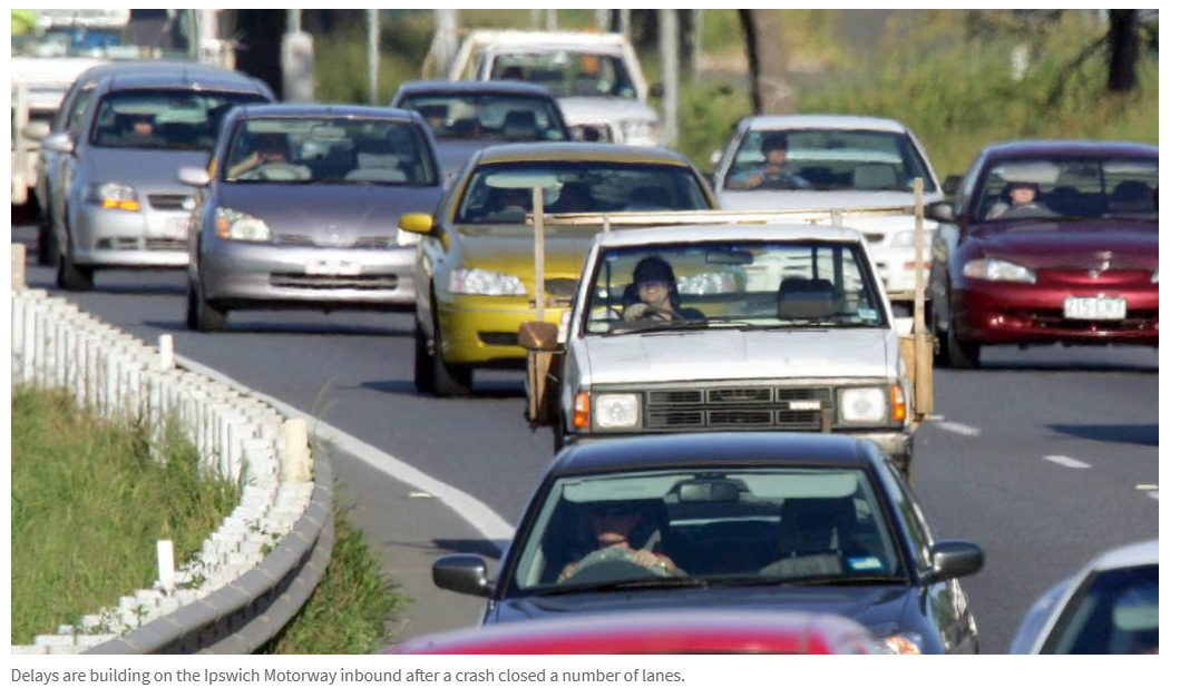 三车相撞致Ipswich Motorway入城方向车道封闭,通勤严重延误!
