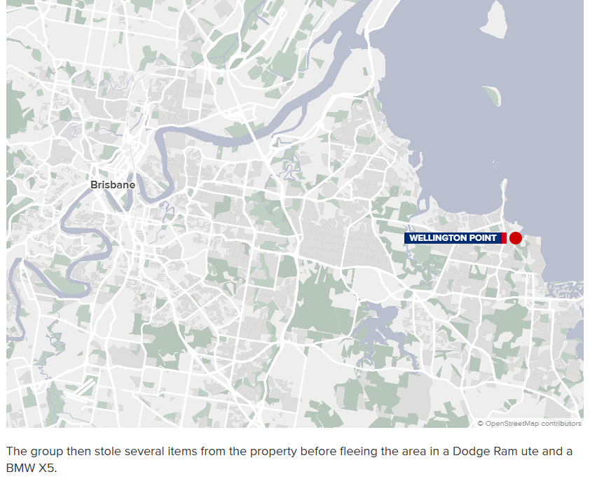 随后,该团伙从屋内盗走若干物品,驾驶一辆道奇Ram Ute和一辆宝马X5逃离现场。