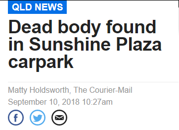 阳关海岸的小伙伴注意! Sunshine Plaza购物中心的一个停车场发现了一具尸体! 调查仍在进行中! 警方提醒: 如果您或您所爱的人遇到危机或需要支持, 请致电生命热线:13 11 14 ...
