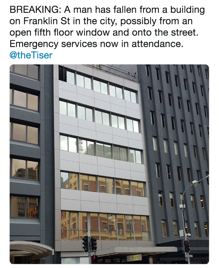 突发! 阿德莱德CBD一男子从高楼坠落! 道路封锁!大家注意绕行! 文章来源:网络综合整理