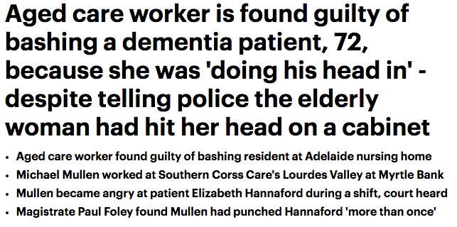 据报道,Michael Mullen此前在阿德莱德一家养老院做护工,但是却丧心病狂的殴打了一名老人,使她面部严重受伤,痛苦不已。 “这对我来说是一种非常痛苦的伤害,这样失去母亲的方式也令我感到非常难过。” ...