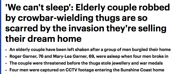 现在的歹徒真是越来越猖狂了,不仅入室抢劫还要伤人! 近日,在昆士兰阳光海岸一对老夫妇遭遇了一场噩梦般的入室抢劫,一群手持撬棍的暴徒居然在深夜闯入了他们的家! 第二个男人外貌特征也是白人 ...