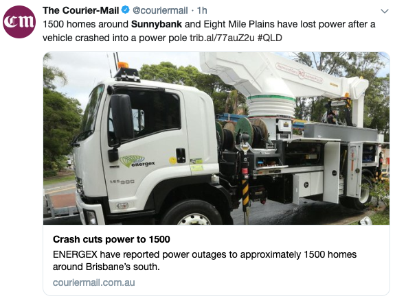 今天早上,布里斯班的Sunnybank地区因为一起交通事故发生了紧急停电,1500户家庭受到了影响。 上午9点50分左右,两辆车在 Riverside Express相撞,导致两条车道关闭。 事故发生后,Elizabeth St 出口 ...