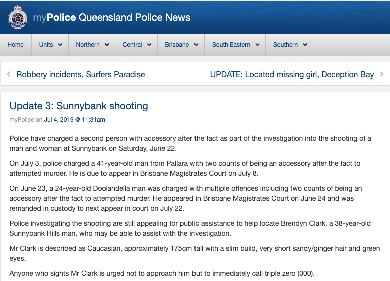 Sunnybank Hills 枪击案又抓住一名嫌疑犯! 然而该名嫌疑犯也是从犯,并不是主谋。 主犯目前仍然在逃! 目前,警方并没有公布案件发生的原因。 如果你看到了嫌疑人,千万不要靠近,请立即与警方取 ...