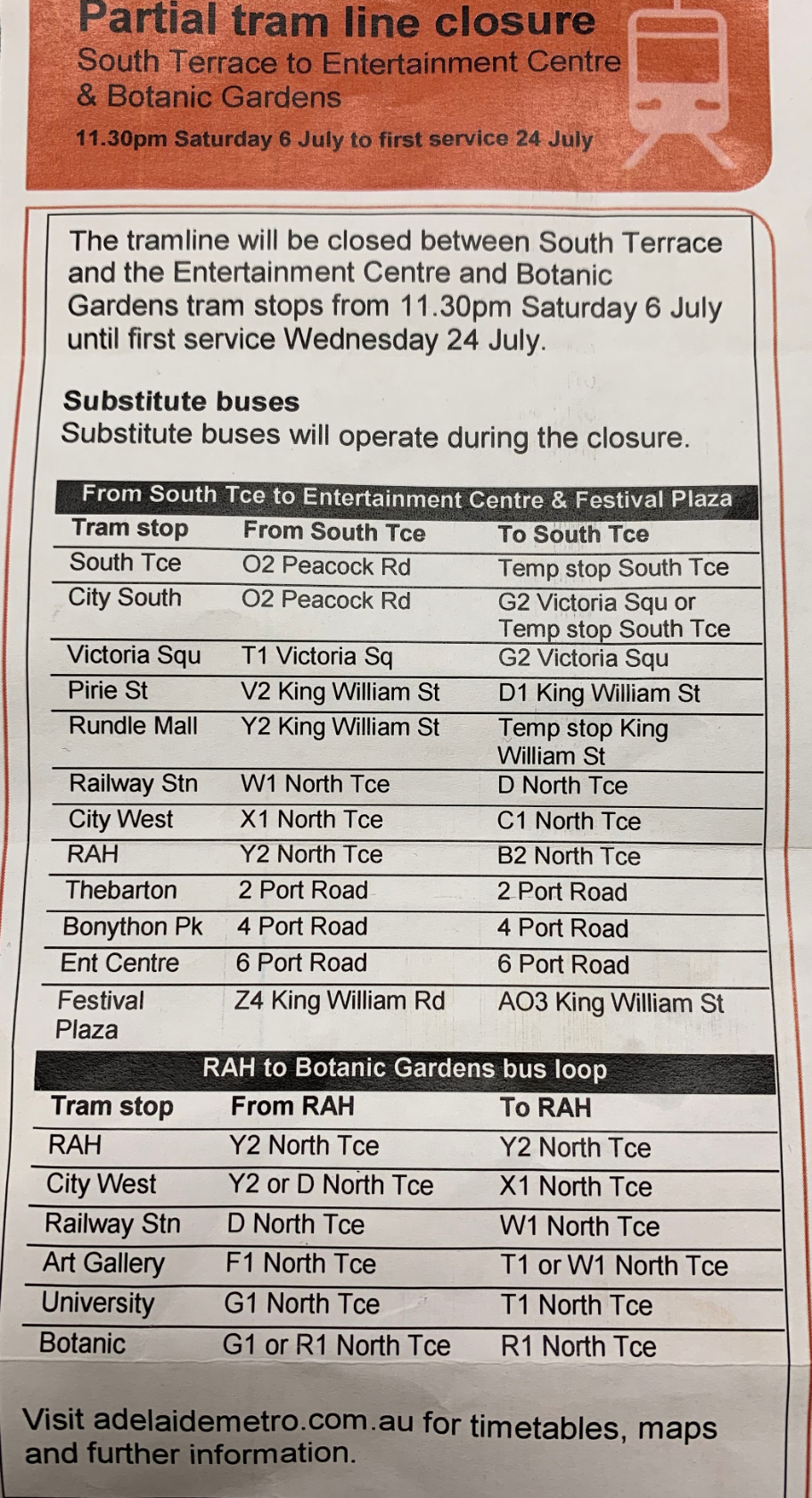 由于Tram停运三周, 今天早上, 阿德莱德CBD高峰时段的交通陷入了一场大混乱中! 提醒球迷们提前选择好出行方式,以免耽误了看比赛的心情。 希望这三周的不便和混乱可以快点过去, 安装了新轨道的T ...