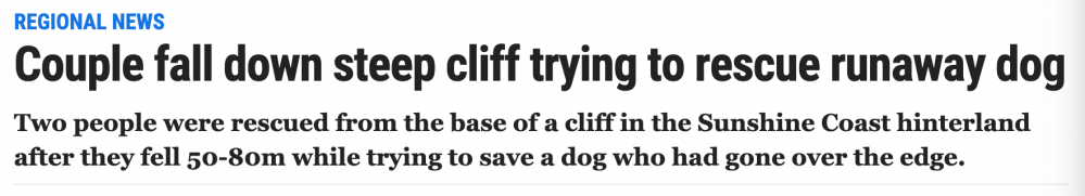 一对情侣为救爱狗,坠入80米高悬崖! 救护人员说,“他们确实走了很长一段路,深入到悬崖下50-80米之间。 “男性被困,无法移动,女性颈部和肩部受伤。” 昆士兰消防和紧急服务部发言人表示,技术救援人员 ...