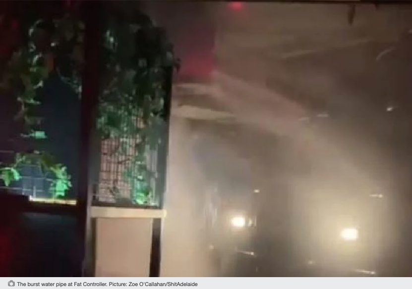 刚刚过去的这个周末, 阿德莱德CBD一家夜总会被淹,顾客四散而逃! 凌晨五点刚过, North Tce上一家名为Fat Controller的夜总会出现了惊人的一幕:大量的水从天花板上的一根水管中倾泻而下。 店内的狂欢者 ...