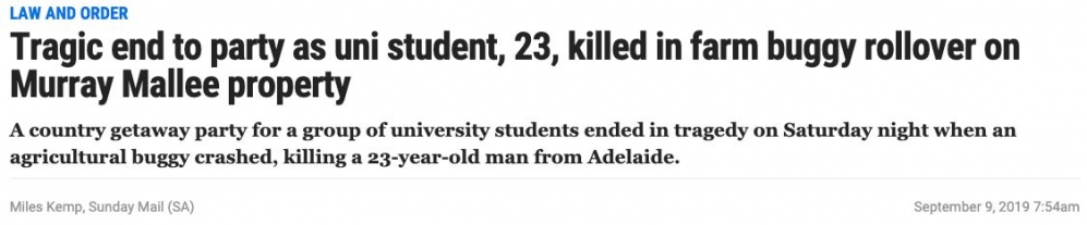 在刚刚过去的这个周末, 一名阿德莱德的大学生不幸遇难。 本该是一群年轻人欢乐的假期, 却不得不以悲剧收场! “它不像他们说的那样是四轮车,它更像是一辆小型农用手推车。” 目前,事故仍在进一步的调 ...