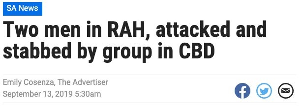 突发! 今天凌晨, 阿德莱德CBD有两名男子遇刺! 一名男子腹部被刺,另一名男子手部被刺伤。 凌晨3点30分左右,这两名男子在Grenfell和King William streets的十字路口遭到一伙人的袭击! 据悉,该团伙由 ...