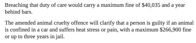 澳洲司机注意了! 昆州即将出台一条“最严”新交规! 如果司机将狗狗锁在车内,将面数万澳元的高额罚款! 司机该如何正确安置动物,违反相关规定将面临最高40035澳元的罚款及一年的监禁。 修正案还将表明 ...