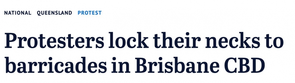 布里斯班抗议者又出新招,将脖子锁在路障上! 该组织在一份声明中说:“气候危机意味着生态崩溃,战争,饥荒,难民危机,疾病,痛苦和灭绝。” “知道这一点,我不能被动,我必须做一切必要的事情来改变这种 ...