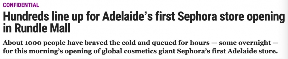 太疯狂! 今天一早,Rundle Mall就排起了长长长长长队, 这气势比Boxing Day还要夸张! 全球化妆品巨头丝芙兰(Sephora)在澳大利亚每年收益71亿澳元,独家经营Rihanna的Fenty Beauty,Marcs Jacobs和Kat V ...