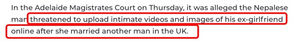 阿德莱德亚裔留学生涉嫌威胁伴侣! 因散布私密视频被捕! 据报道,居住在阿德莱德的25岁尼泊尔留学生,于周三在一个市中心的房屋内被捕。 McLeod还表示:“除了犯罪者的威胁和胁迫之外,受害者还常常感到 ...