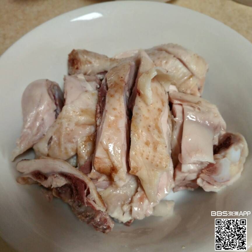 阿德的鸡肉比蔬菜便宜。前两天做了鸡公煲吃,今天去洋人超市买了两个鸡腿一盒鸡爪,做成白切鸡和凤爪,换换口味,关键是蘸料要味道好。