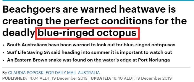 • 热浪来袭!海边游玩别大意!小心蓝环章鱼!