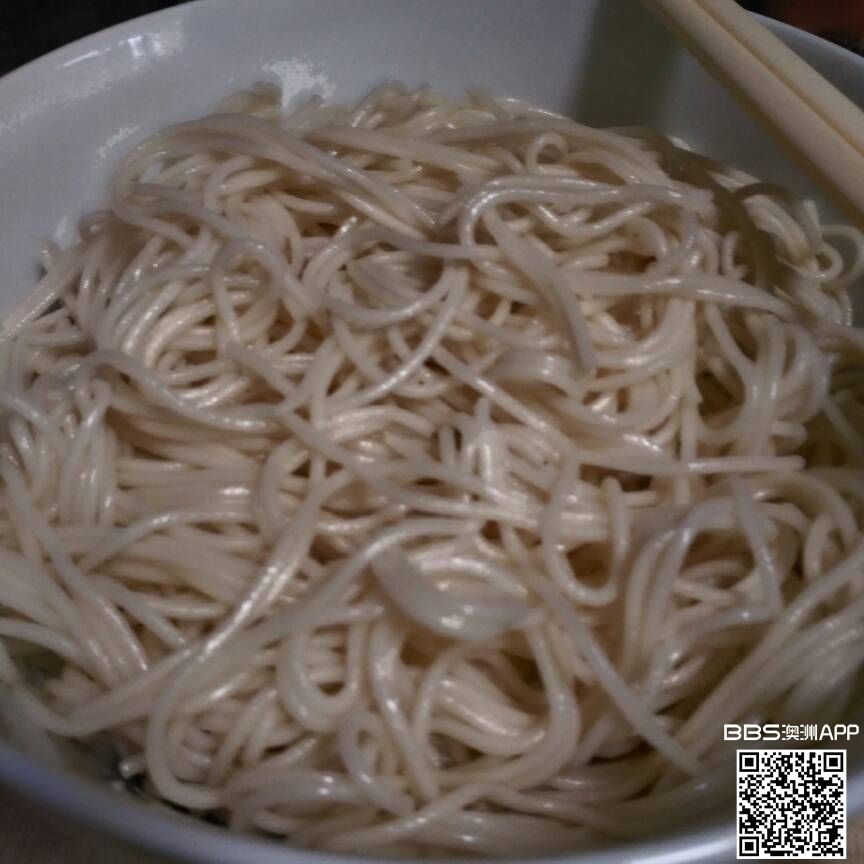 老外朋友要吃上海冷面,没有切面,就用卷面做了一大碗,还有拌料。