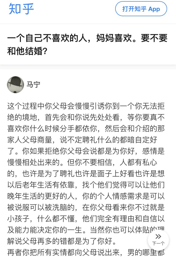 情投意合还是很重要的,毕竟人生很长,喜欢就是喜欢,不爱就是不爱,培养出来的感情是亲情,不可能是爱情,想清楚是你结婚,跟你过,还是跟你妈妈结婚 |