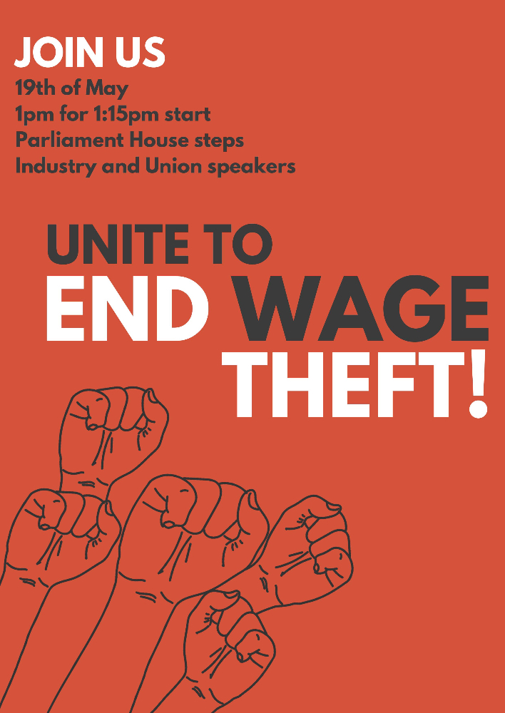加入我们的运动,将工资盗窃定为犯罪! 5月19日,周三,下午1点。 南澳议会大厦楼体上。 南澳大利亚五分之一的工人很可能受到工资盗窃的影响。 当前防止或阻止工资盗窃的系统机制不起作用,这使所有工人都容易受到伤害。必须修改弱的劳资关系法以确保工人受到保护。 在SA议会委员会参加盗窃工资会议之后,请加入我们,敦促议会议员就南澳大利亚州的盗窃工资问题采取行动。 我们认可这项活动将在原住民(Kaurna)土地上举行。我们向过去和现在的传统监护人表示敬意。主权从未割让 更多信息:https://fb.me/e/3GncynmpI 更多信息请关注SA Labour info Hub Facebook 页面:https://www.facebook.com/SALabourInfoHub |