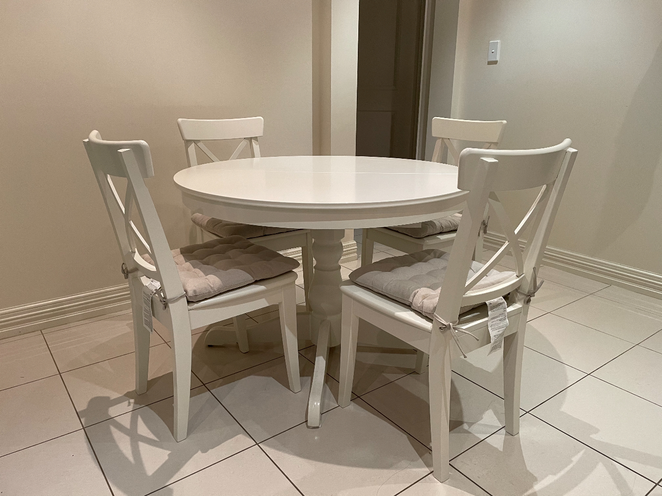 已售出 600 出95成新宜家木质可伸缩餐桌+椅子+坐垫 买了半年多,几乎没怎么用过,没有任何破损,几乎就是新的,尺寸:1.1m X 1.1m,因为要去别的城市工作,现低价出售,有兴趣的朋友请加微信联系,谢谢
