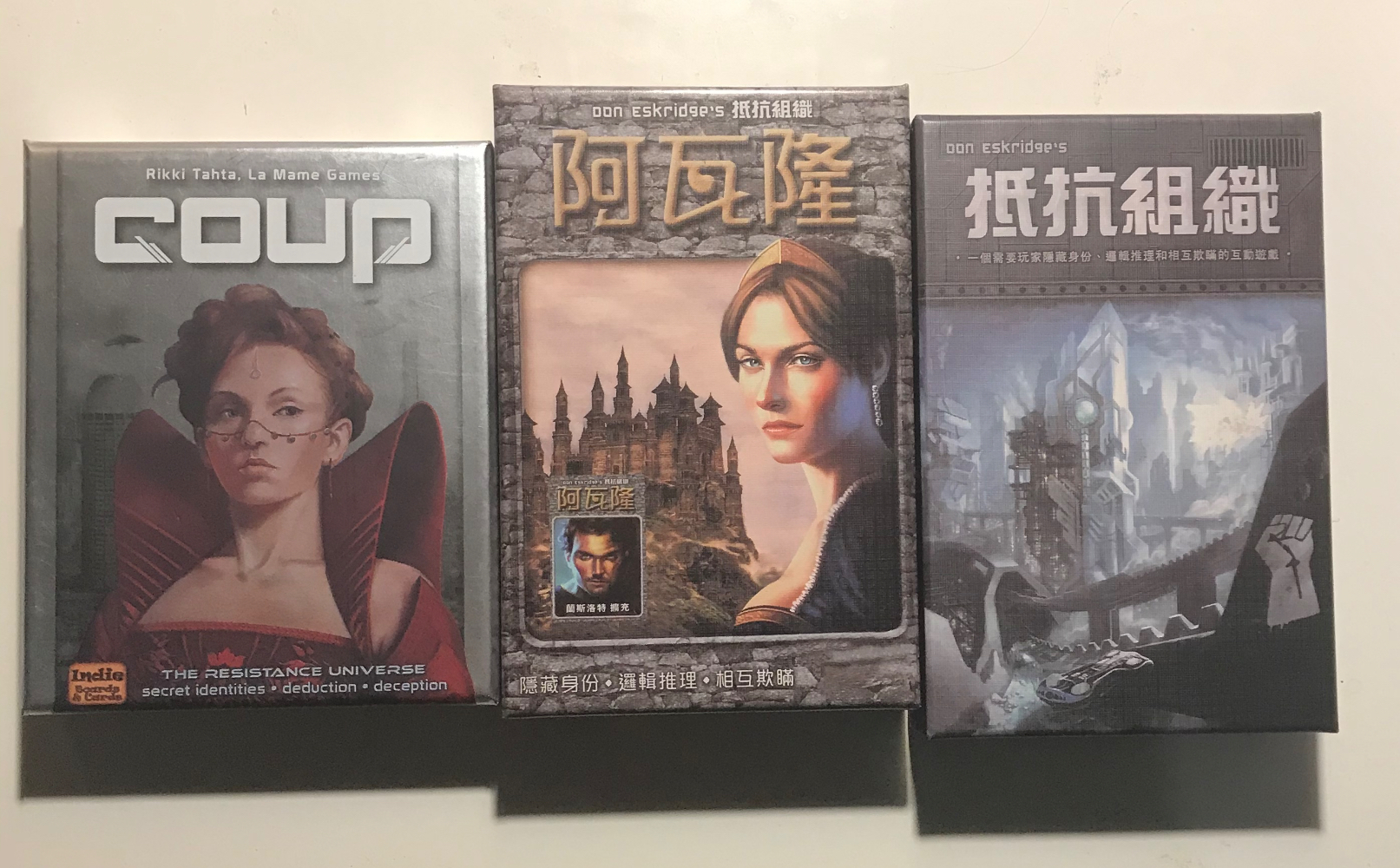 20刀出售桌游阿瓦隆抵抗政变中文三件套,适合5到10人小伙伴们聚会玩,三件套均已拆封,但只玩过政变几次,阿瓦隆和抵抗只是看了一眼,所以基本上都很新。有兴趣的亲私聊我
