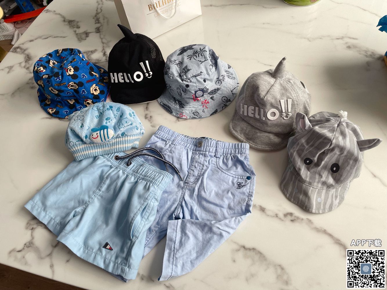 六个帽子两条短裤适合一岁男宝,两块一件,全部拿走15 电话0425838097 王女士