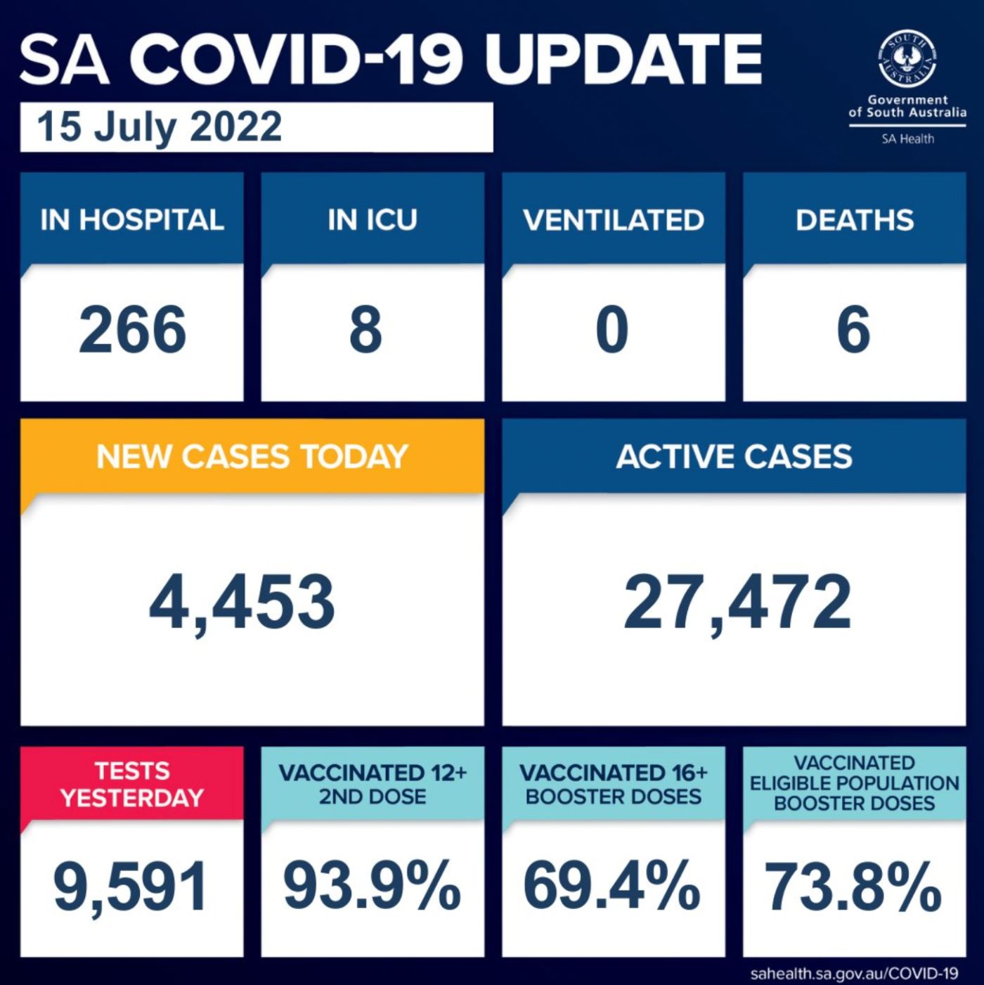 在过去的24小时里,南澳新增4453例,6人死亡! 目前南澳有27,472个活跃病例。 南澳卫生部证实,有6人死亡,是一名80多岁的妇女、一名90多岁的妇女、两名80多岁的男性和两名90多岁的男性。 目前南澳有266 ...