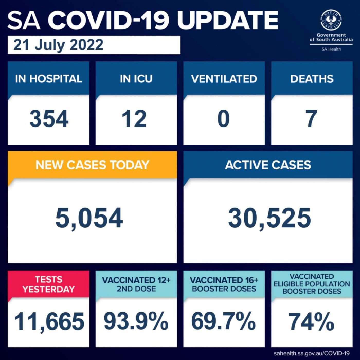 在过去的24小时里,南澳新增5054例,7人死亡! 目前南澳有30,525个活跃病例。 南澳卫生部证实,有7人死亡,是一名70多岁的妇女、一名80多岁的妇女、四名90多岁的妇女和一名80多岁的男性。 目前南澳有354名COV ...