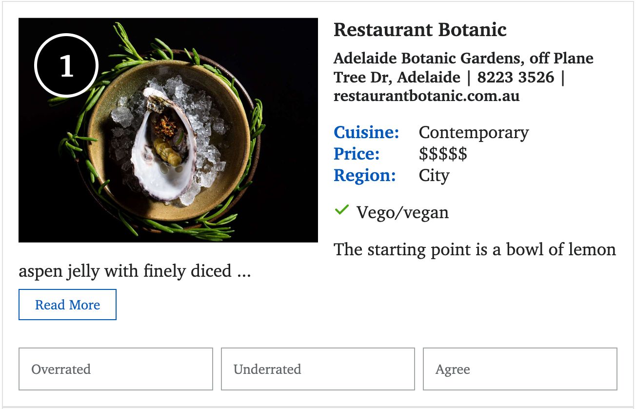 2022年南澳最佳餐厅“Delicious 100”完整清单出炉! 图文来源:The Advertiser 原文链接: