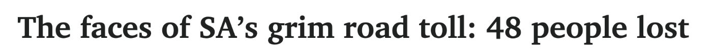 2022年迄今为止,已有48人在南澳的道路上丧生。 2022年道路上记录的丧失人数少于2016-2020年的平均水平。 但在2022年上半年,因车祸丧生的人中有三分之一是30岁以下的人,略高于五年的平均水平。 交通服务部 ...