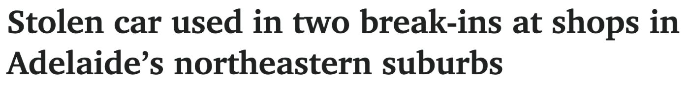 窃贼开着被盗汽车闯入阿德莱德东北部郊区的两家商店。 目前,警方正在调查事件发生的原因。 任何知情者请致电1800 333 000。 周五下午,有两人因涉嫌在CBD携带刀具被逮捕。 警方称,下午4点半左右,这两人从 ...