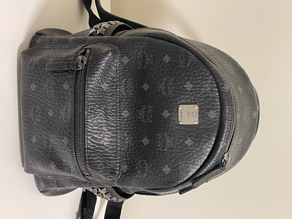 MCM黑色小号双肩包,侧边铆钉稍微有点磨损,整体成色很不错。内里干净,皮质良好无磨损。容量可观,可装下文件夹以及ipad等。399可小刀 :0452061103 wx:yu812091988