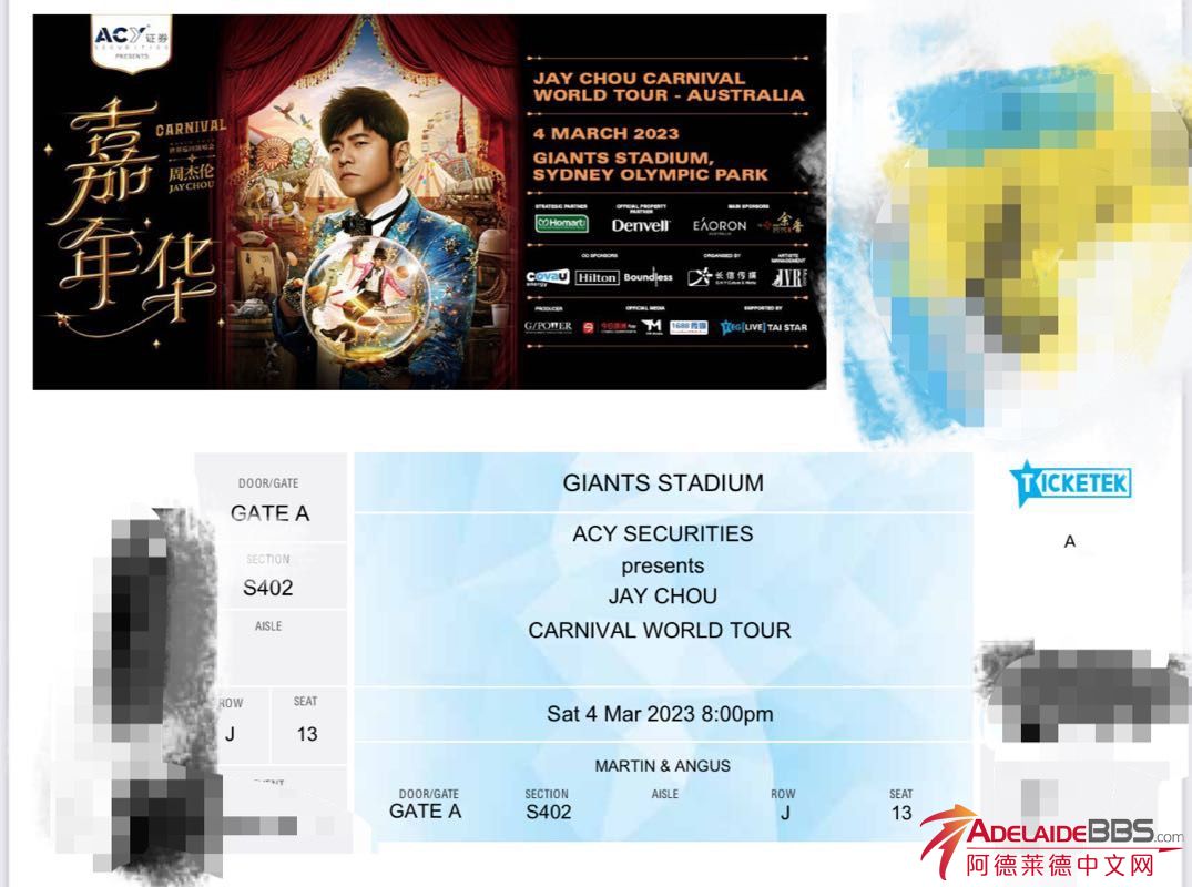• 出一张2023年3月4日周杰伦悉尼演唱会门票