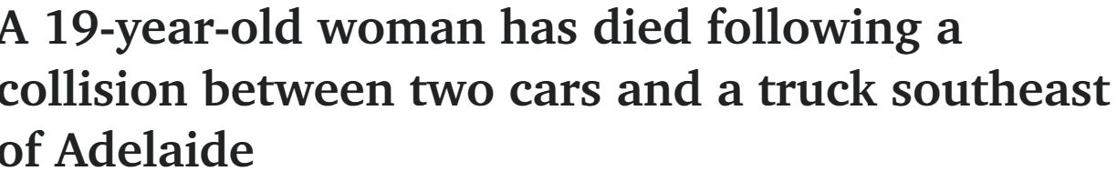 周五晚上,阿德东南部一辆卡车和两辆汽车相撞,一名19岁女子当场死亡,这是24小时内南澳道路上的第三起死亡事件。 工作人员清理现场期间,Dukes Highway在Tailem Bend和Coonalpyn之间的路段仍处于封锁状态。 ...