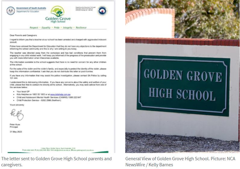 南澳东北部郊区Golden Grove High School一名教师被逮捕,并被调离工作岗位。 Kuss先生呼吁相关人士提供可能有助于警方调查此事的信息。 警方表示,这名62岁男子因严重猥亵罪于上周六被捕。警方称,该事件 ...